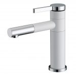 - White Bathroom Faucet: Solid brass faucet body with white painting ensures quality and longevity. This single handle bathroom sink faucet is the perfect addition for lavatory vanity, washroom and cloakroom. The clean lines really add to the modern look, simple and elegant.
