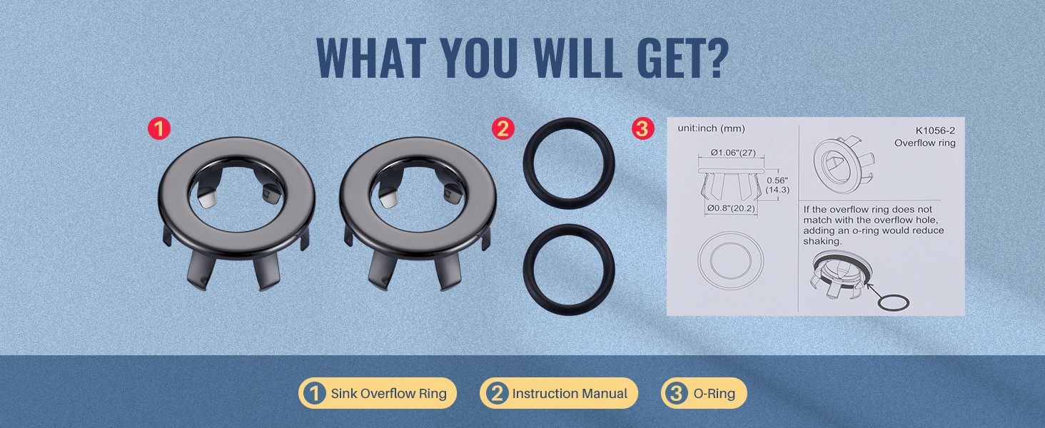 Size: These 2 sets of sink overflow covers are suitable for 0.8-1 inch Hole, if the overflow ring does not match with your hole, adding an o-ring would reduce shaking.