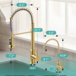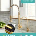 【Premium Material】Our brushed gold kitchen faucets are made of SUS304 stainless steel, ensures durability and reliability of the construction. Life-shine brushed finish resists fingerprints and water spots for a cleaner looking. Ceramic cartridge valve passed over 500,000 times open and close tests for drip-free performance.