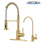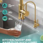 【Ideal combination】The pull down kitchen faucet with high arched 360 degree swivel spout allows you to easily reach every corner of the sink, ensuring efficient cleaning. Drinking water faucet for reverse osmosis provides you with clean drinking water. Buying a set at one time saves time and money, and makes daily use more convenient.