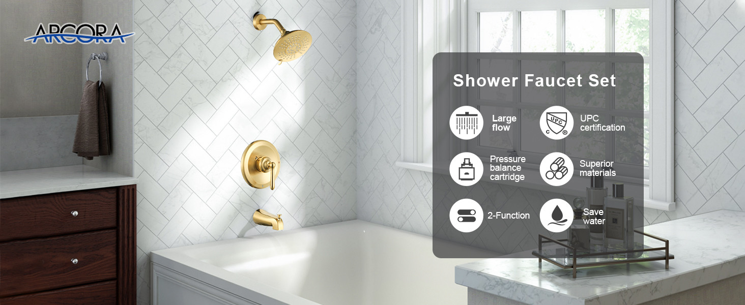 ARCORA Brushed Gold Wall Mounted Shower System with 6-Inch Rain Shower Head and Tub Spout