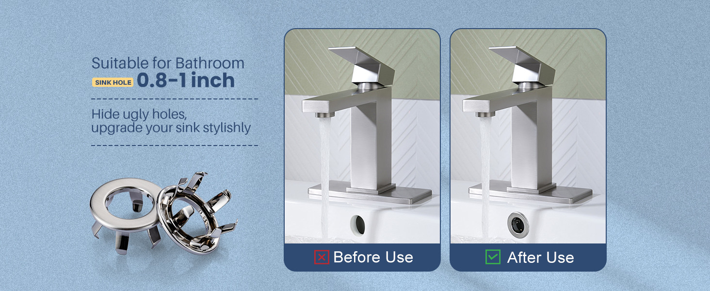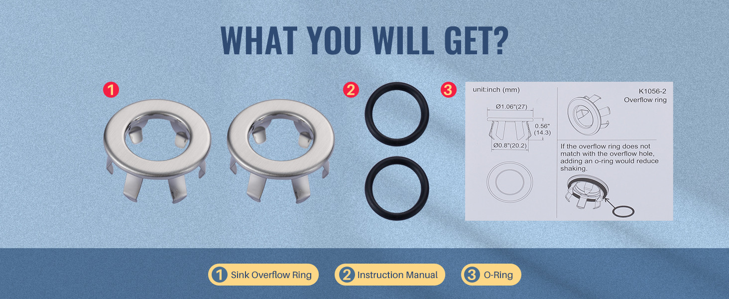 • Size: These 2 sets of sink overflow covers are suitable for 0.8-1 inch Hole, if the overflow ring does not match with your hole, adding an o-ring would reduce shaking.