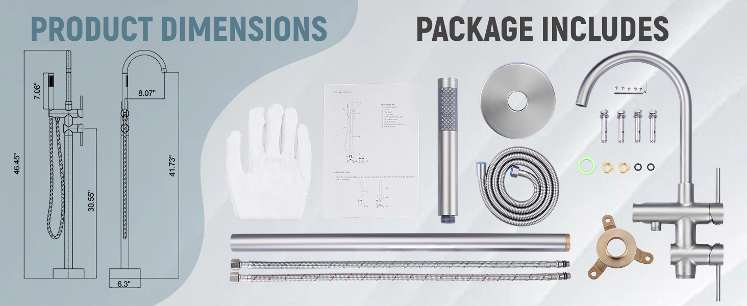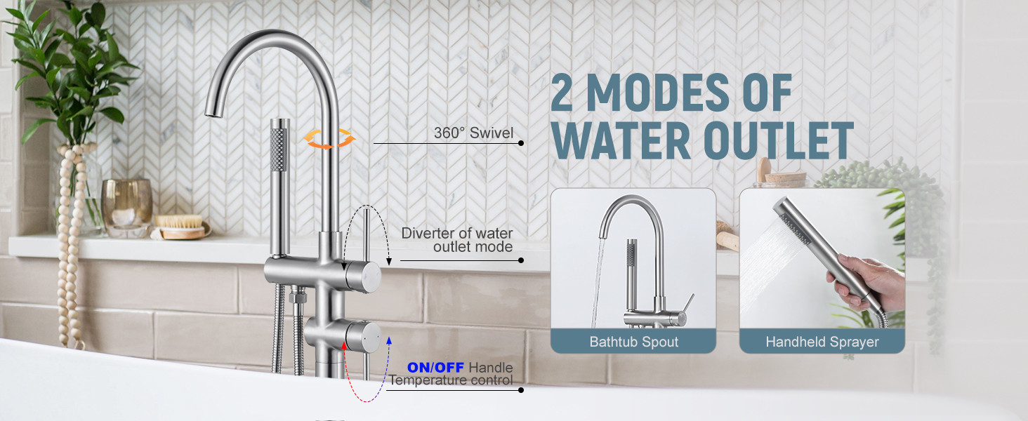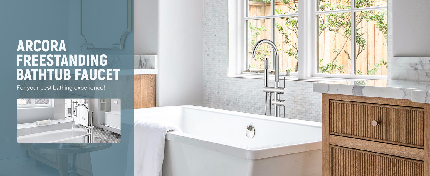 ARCORA Brushed Nickel High Flow Freestanding Bathtub Faucet with Handheld Sprayer