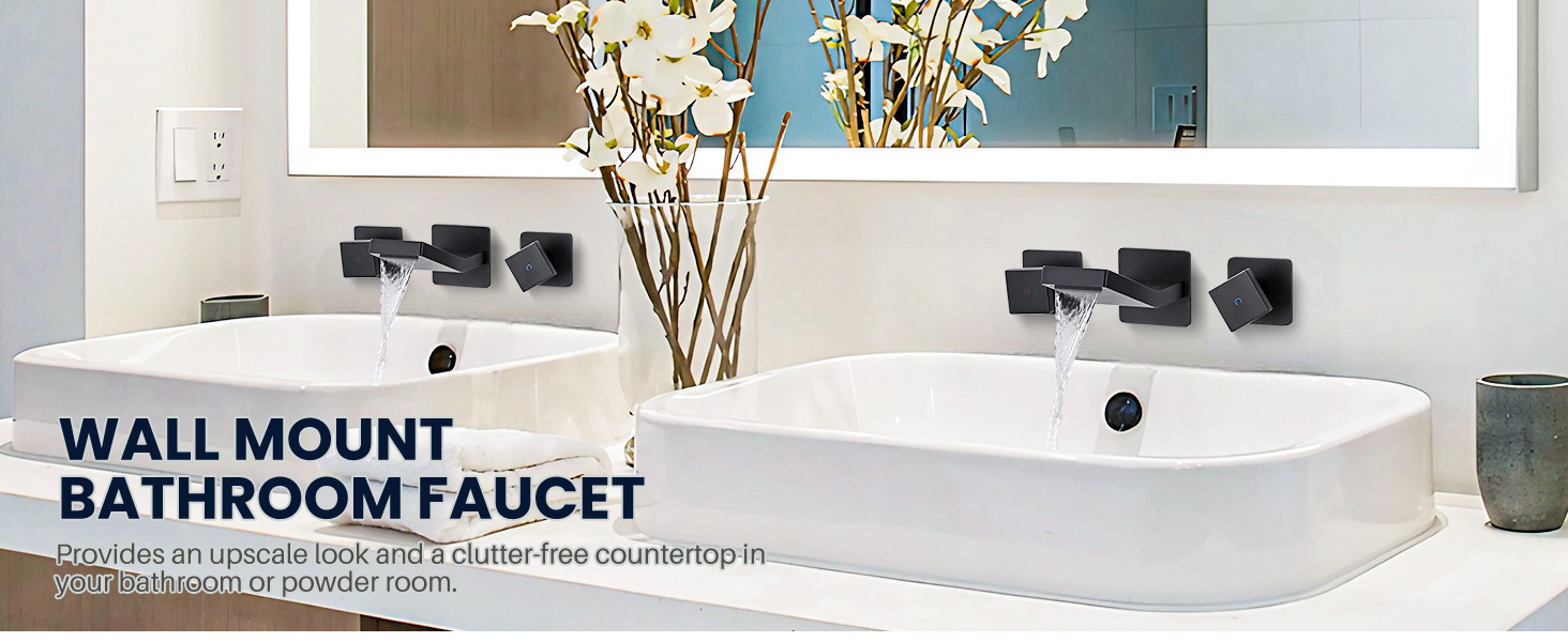 【Space-Saving Installation】As a wall-mount faucet, it frees up valuable vanity space, providing a cleaner look and more counter area. Its design offers comfortable handwashing under the graceful cascade of water.