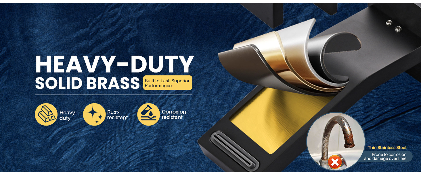 【Solid Brass Construction】Crafted from high quality solid brass, the wall mount vessel faucet is built for exceptional durability and corrosion resistance. This robust core ensures long-lasting reliability while maintaining its elegant appearance for years to come.