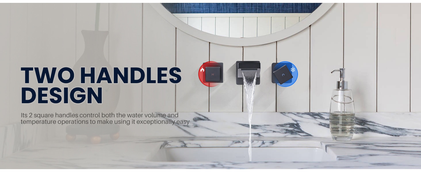 【Elegant Waterfall Spout】This wall mounted bathroom faucet features a stunning waterfall spout that creates a smooth, wide sheet of water for a serene and luxurious bathing experience.