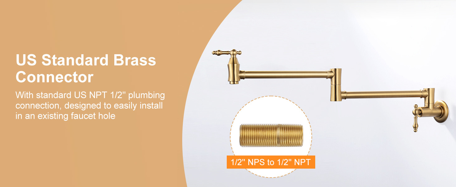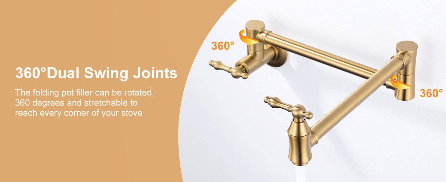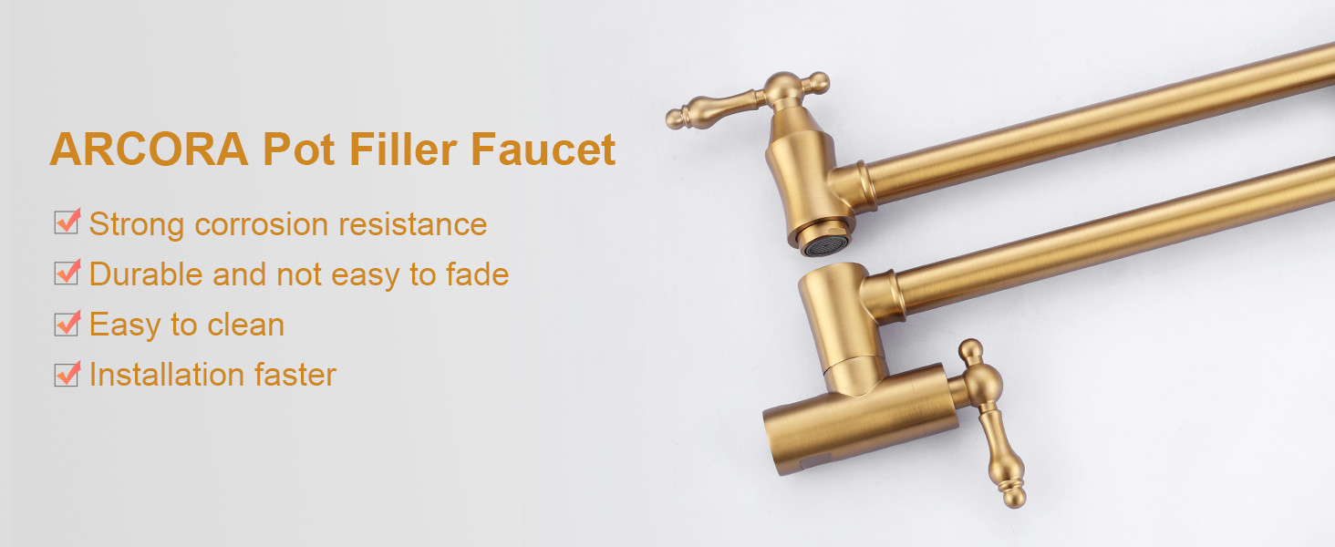 ARCORA Modern Wall Mount Brushed Gold Pot Filler Commercial Kitchen Faucet Over Stove