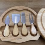 The ARCORA Personalized Bamboo Cheese Board Knife Set includes a beautiful, eco-friendly bamboo board and four high-quality cheese knives. Perfect for entertaining, it allows easy slicing, spreading, and serving of cheeses. The personalized design adds a unique touch, making it an ideal gift or centerpiece for gatherings and parties.
