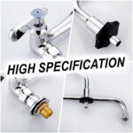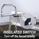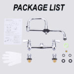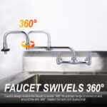 This commercial folding sink faucet is made of high-quality solid brass, a safe and healthy material with excellent corrosion and rust resistance for durability, ideal for enhancing the style of your kitchen. This commercial kitchen sink faucet has a 17.8 in. long spout with a double-jointed swing arm design with 360 swivel feature that allows the nozzle to rotate at will to maximize the reachable area, paired with an easy-to-operate insulated switch, this switch briefly shuts off the faucet, making it easy for you to quickly fill pots and pans at the stovetop without having to walk from the sink to the stovetop, improving ease of use. The 8 in. centered wall-mounted fill faucet features hot and cold dual handle controls for easy and precise control of water temperature and flow. The spout is equipped with a NEOPERL aerator, which not only maximizes water flow, but also conserves water and prevents spills.