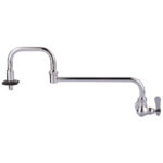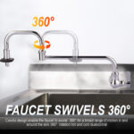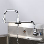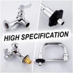 This commercial folding sink faucet is made of high-quality solid brass material, a safe and healthy material with excellent corrosion and rust resistance for durability, ideal for enhancing the style of your kitchen. This commercial kitchen sink faucet has a 20.6 in. long spout, a double-jointed swing arm design with 360 swivel feature that allows the nozzle to rotate at will to maximize the reachable area, and an easy-to-operate insulated switch that briefly shuts off the faucet, making it easy to quickly fill pots and pans on the stovetop without having to walk from the sink to the stovetop, increasing ease of use. The single-hole design allows for easy installation and the single-lever design allows for easy water flow control. The spout is equipped with a NEOPERL aerator that not only maximizes water flow, but also conserves water and prevents overflow.