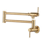 Wall Mount Pot Filler Kitchen Folding Faucet Double-Handle with Dual Joint Swing Arm in Gold