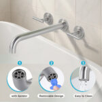 This 3-hole wall mounted bathtub faucet features a unique vintage style and a quality finish that makes it compatible with any style of bathroom, making it ideal for you to use to remodel or decorate your bathroom. The bathtub faucet is made of sturdy and durable brass material, which not only resists everyday scratches, corrosion and discoloration, but also ensures that it is not easily damaged or rusted in the long run, ensuring durability, and the use of this bathtub faucet can effectively enhance the quality of your bathroom. The faucet comes with a 12-inch extension spout that provides a large water output of up to 8 GPM to fill the tub quickly. The extra-long spout extends to the edge of the tub to direct water downward, and combined with the spout’s high-quality aerator, it prevents splashing while still giving you a comfortable flow of water. The durable ceramic disc spool ensures no leaks.