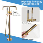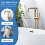 The modern bathtub shower faucet is made of rugged brass material to ensure durability and reliability, paired with a premium ceramic valve cartridge inside to provide you with smooth, drip-free performance, designed to provide you with the ultimate experience of using the shower faucet to provide you with long-lasting, stable performance. This quality bathtub faucet comes with a brass tripod paired with expansion bolts that can be mounted to concrete, ensuring easy and solid installation while also ensuring seamless passage of the water supply. The bathtub faucet features a modern design with a multi-layer coated premium finish that is compatible with any style of bathroom while also preventing fingerprints and smudges from adhering, making it easy to maintain on a daily basis, and giving your bathroom a modern and luxurious look. The freestanding bathtub faucet is equipped with an internal diverter, which can help you freely switch between the waterfall bathtub faucet and the handheld shower to meet your bathing needs.