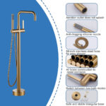 Single-Handle Freestanding Tub Faucet Floor Mount Bathtub Filler with Hand Shower in. Brushed Gold