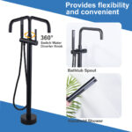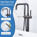 The modern bathtub shower faucet is made of rugged brass material to ensure durability and reliability, paired with a premium ceramic valve cartridge inside to provide you with smooth, drip-free performance, designed to provide you with the ultimate experience of using the shower faucet to provide you with long-lasting, stable performance. This quality bathtub faucet comes with a brass tripod paired with expansion bolts that can be mounted to concrete, ensuring easy and solid installation while also ensuring seamless passage of the water supply. The bathtub faucet features a modern design with a multi-layer coated premium finish that is compatible with any style of bathroom while also preventing fingerprints and smudges from adhering, making it easy to maintain on a daily basis, and giving your bathroom a modern and luxurious look. The freestanding bathtub faucet is equipped with an internal diverter, which can help you freely switch between the waterfall bathtub faucet and the handheld shower to meet your bathing needs.