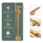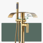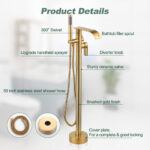 The main parts of the waterfall bathtub faucet are composed of high-quality solid brass material, which can effectively prevent fading and corrosion during daily use. The surface of the bathtub faucet adopts multi-layer plating technology, which is not easy to produce scratches and stains, and the faucet surface is bright and smooth, with a delicate and fashionable appearance. Simple and easy to operate single-lever design provides precise temperature and flow control, and with the diverter valve button, the handheld showerhead and high arch 360-degree swivel bathtub faucet can be easily switched in less than a second. With a high water flow of 2 GPM, the tub faucet not only fills the tub quickly, but also provides a great bathing experience. The modern and comfortable round wand hand shower features non-clogging nozzles made of natural silicone material and comes with a matching 59-inch double-screw stainless steel shower hose for rinsing the tub or after-bath rinsing. Floor mounting adds even more modern style to this bathtub faucet and gives your bathroom a more organized look.