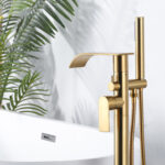 Single-Handle Freestanding Tub Faucet with Hand Shower, Waterfall Floor Mount Bathtub Filler