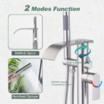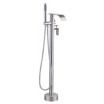 Single-Handle Freestanding Tub Faucet with Hand Shower, Waterfall Floor Mount Bathtub Filler in. Brushed Nickel