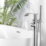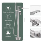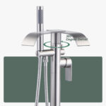 The main parts of the waterfall bathtub faucet are composed of high-quality solid brass material, which can effectively prevent fading and corrosion during daily use. The surface of the bathtub faucet adopts multi-layer plating technology, which is not easy to produce scratches and stains, and the faucet surface is bright and smooth, with a delicate and fashionable appearance. Simple and easy to operate single-lever design provides precise temperature and flow control, and with the diverter valve button, the handheld showerhead and high arch 360-degree swivel bathtub faucet can be easily switched in less than a second. With a high water flow of 2 GPM, the tub faucet not only fills the tub quickly, but also provides a great bathing experience. The modern and comfortable round wand hand shower features non-clogging nozzles made of natural silicone material and comes with a matching 59-inch double-screw stainless steel shower hose for rinsing the tub or after-bath rinsing. Floor mounting adds even more modern style to this bathtub faucet and gives your bathroom a more organized look.