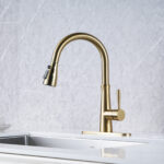 Single Handle High Arc Pull Down Sprayer Kitchen Faucet in Brushed Gold