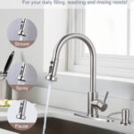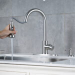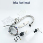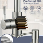 The Single Handle Pull Down Kitchen Sink Faucet embodies the perfect blend of functionality and reliability, and we are committed to bringing you a great experience. For convenience, this faucet comes with a high arc 360 swivel spout, safety base, extra-long pull-out hose and single handle design, which allows the water to flow easily into every corner of the sink, helping you to achieve all-around cleaning of the sink, and the single handle design realizes precise control of the water temperature and water flow. If you are looking for a perfect faucet, our faucet will be your best choice. The kitchen sink faucet comes with PEX supply lines and 3/8 threads designed for standard US plumbing connections, and a soap dispenser for your endless convenience. The eco-friendly SUS 304 stainless steel pull-out kitchen faucet meets lead-free standards and prioritizes your family’s health.
