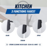 Modern appearance craft, high quality material, scratch resistant, make your kitchen more advanced. Threaded rod and nut, with rust and corrosion resistance, to ensure the safety of your water and take care of your health. Two water flow modes switch at will, easy to use, the set includes a triangular fixing plate and mounting panel to reinforce the contact between the faucet and the countertop, suitable for 1-hole or 3-hole installation, providing you with more options for use.