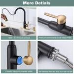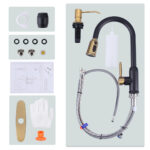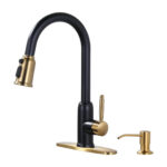 Be the first to review “Single Handle Pull Out Sprayer Kitchen Faucet Deck plate Included with Soap Dispenser in Black and Gold”