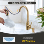 Be the first to review “Single Handle Pull Out Sprayer Kitchen Faucet Deckplate Included with Soap Dispenser in Brushed Gold”