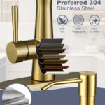 Single Handle Stainless Steel Pull Down Sprayer Kitchen Faucet with Soap Dispenser in Brushed Gold