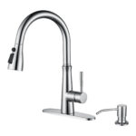 Upgrade your kitchen with this single handle pull down kitchen faucet that gives you an unprecedented experience for all your daily water needs. The 360?? high arc spout faucet is made of high quality stainless steel that is corrosion-resistant, fingerprint-free, and durable. This faucet also features three functions including water flow, spray and pause to meet your daily needs. Equipped with a high-capacity soap dispenser, it brings convenience to your daily cleaning and is ideal for those who emphasize convenience and cleanliness. The pull-out kitchen faucet has a sleek and modern design that keeps your kitchen clean and fresh and fits most decorating styles.