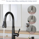 Upgrade your kitchen with this single handle pull down kitchen faucet that gives you an unprecedented experience for all your daily water needs. The 360?? high arc spout faucet is made of high quality stainless steel that is corrosion-resistant, fingerprint-free, and durable. This faucet also features three functions including water flow, spray and pause to meet your daily needs. Equipped with a high-capacity soap dispenser, it brings convenience to your daily cleaning and is ideal for those who emphasize convenience and cleanliness. The pull-out kitchen faucet has a sleek and modern design that keeps your kitchen clean and fresh and fits most decorating styles.