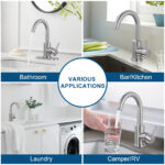 The body of the modern bar sink faucet with single hole installation is made of environmentally friendly and durable high quality lead-free 304 stainless steel material, and the inside of the handle is made of durable ceramic sealing technology, which perfectly avoids the risk of water leakage and provides you with a smooth water flow. Bar sink faucet appearance design is stylish and modern, using this sink faucet can add elegance and sophistication to any kitchen bar decoration. The surface of the bar faucet is made of nano-multi-layer treatment with brushed material, which not only looks stylish and exquisite, but is also very easy to clean, all you need to do for daily cleaning is to gently wipe it with a rag to get a brand new faucet. The single handle design allows you to control the temperature and flow rate easily and precisely, it is easier and more convenient to use, single handle can reach the temperature and pressure you want. Versatile style makes this bar sink faucet perfect for kitchen sinks, bathroom sinks, bar sinks, prep sinks, laundry room sinks and more.