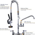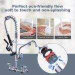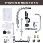 8 Inch Center Wall Mount Kitchen Commercial Sink Faucet with 9.6″ Add-on Swing Spout 25″ Height Faucet with Pull Down Spray