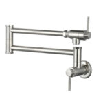 Wall Mount Pot Filler Kitchen Folding Faucet Double-Handle with Dual Joint Swing Arm in Brushed Nickel