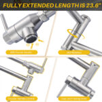 Upgrade your kitchen with this fantastic wall mounted faucet! Crafted from 100% solid brass, it’s built to last, featuring a drip – free brass cartridge that ensures no annoying leaks.With dual joint swing arms, it offers 360?? rotation and extends up to 23.6 in. giving you ample reach for filling pots or cleaning large items. The faucet aerator mixes air with water for a steady, no splash stream.Not only is it practical, but it also looks great. The bright, corrosion-resistant surface is easy to clean and will not fade, it is made with healthy food-grade materials, so you can feel good about using it. Whether you are a home mounted cook or love hosting, this wall faucet is a perfect addition to your kitchen.