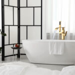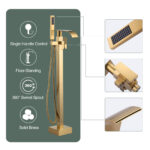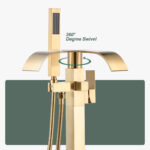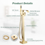 Floor standing bathtub faucet spout features a unique waterfall design, giving you a comfortable and soft water flow to optimize your bathing experience. The main body of the bathtub faucet is made of high-quality solid brass material, which can effectively prevent discoloration and corrosion from daily use and complement the humid bathroom environment. The surface of the faucet adopts multi-layer plating technology, which is not easy to produce scratches and stains, and the surface is bright and smooth, with a delicate and fashionable appearance. The spout has a large water volume of 2GPM, which easily and quickly fills the bathtub, saving your daily bathing time and providing you with a great bathing experience. The easy-to-operate single handle design allows you to precisely control the water temperature and water flow, and the switching valve inside the handle helps you to easily switch between the hand shower and the high arch bathtub faucet spout. The modern and comfortable round wand hand shower features non-clogging nozzles made of natural silicone material and comes with a matching 59-inch double-screw stainless steel shower hose for tub rinsing or after-bath rinsing.