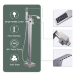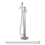 Waterfall Single-Handle Freestanding Tub Faucet, Floor Mount Bathtub Filler with Hand Shower in Brushed Nickel