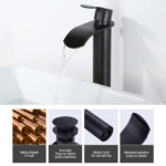 Explore thoughtfully designed waterfall bathroom faucets, available in a range of finishes and styles to suit your preferred design aesthetic. Find the traditional or contemporary bathroom sink faucets that best fit your home’s style and choose from matte black, brushed nickel, brushed gold, brushed graspingly handle ergonomics design for easy temperature and water flow control. Suitable for vanity, basin, laundry, l avatory. with the subtle curves and edges, the design fits seamlessly into an array of environments and with either round or square basins.